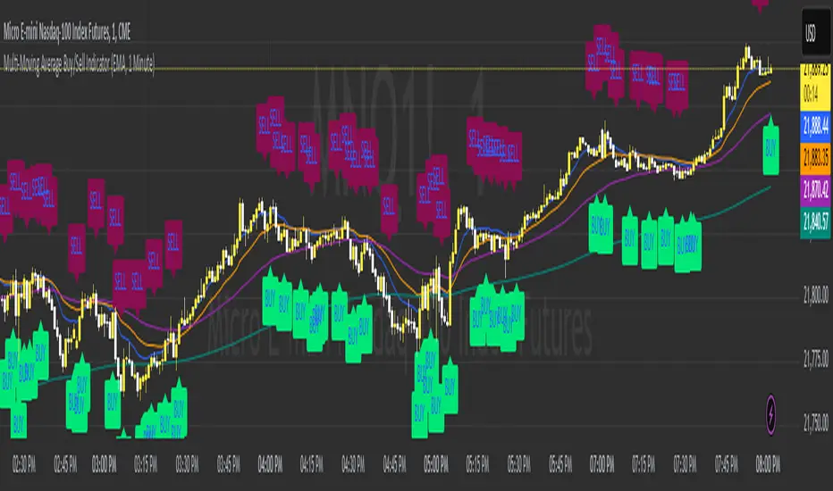 This Multi-Moving Average Buy/Sell Indicator is a powerful and customizable tool designed to help traders identify potential buy and sell signals based on the interaction between price and multiple moving averages. Whether you're a day trader, swing trader, or long-term investor, this indicator provides clear visual cues and alerts to help you make informed trading decisions.