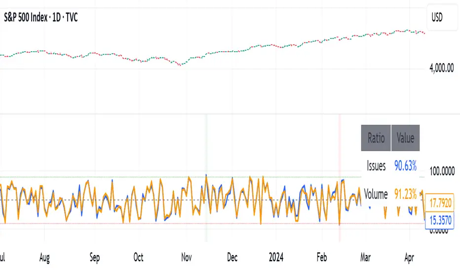 - Issues Ratio: Measures the percentage of NYSE stocks advancing vs. total issues