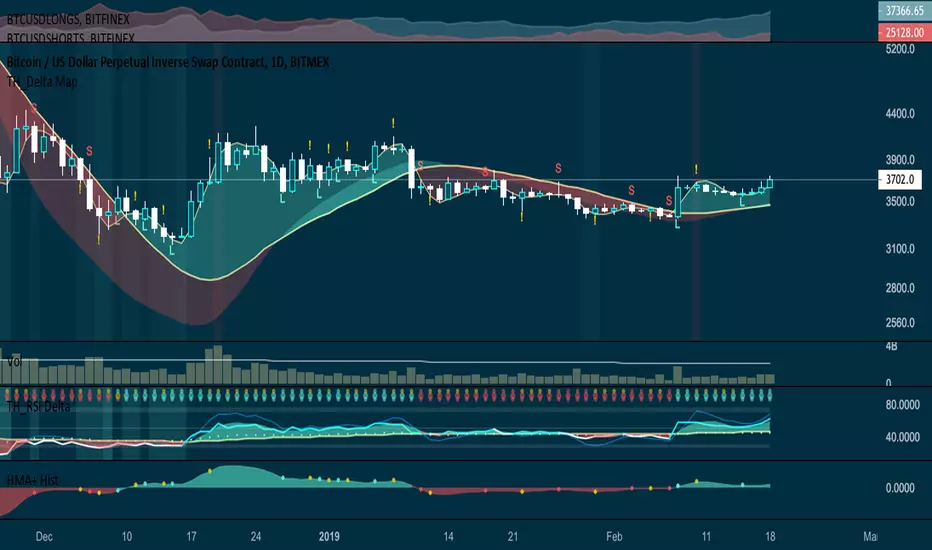 Histogram version of HMA+. This Centered Oscillator show more accurately when trends are reversing thanks to the U-shape reversals and clouds switching Red/Green. Fast MA getting above/under the base implies a establish Bullish/Bearish bias.