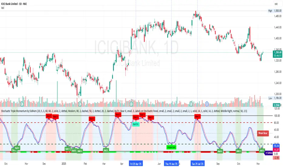 Stochastic Triple Momentum by SidHem is a performance-focused oscillator designed for traders who want deeper momentum insight without chart clutter. It enhances the classic Stochastic with three high-value features: