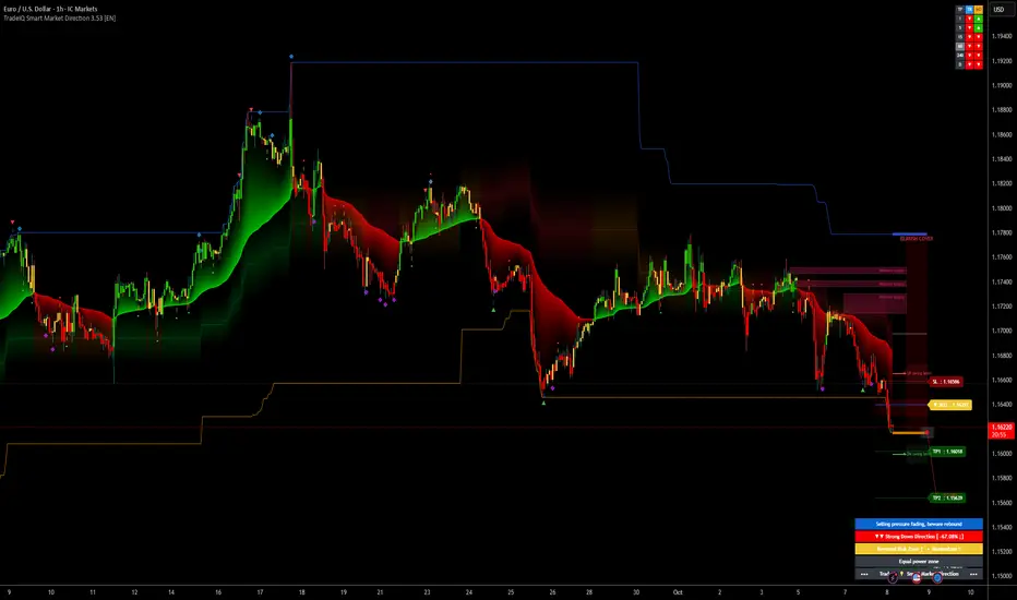 This indicator is intended as a market context and direction analyzer, not an automated trading system.