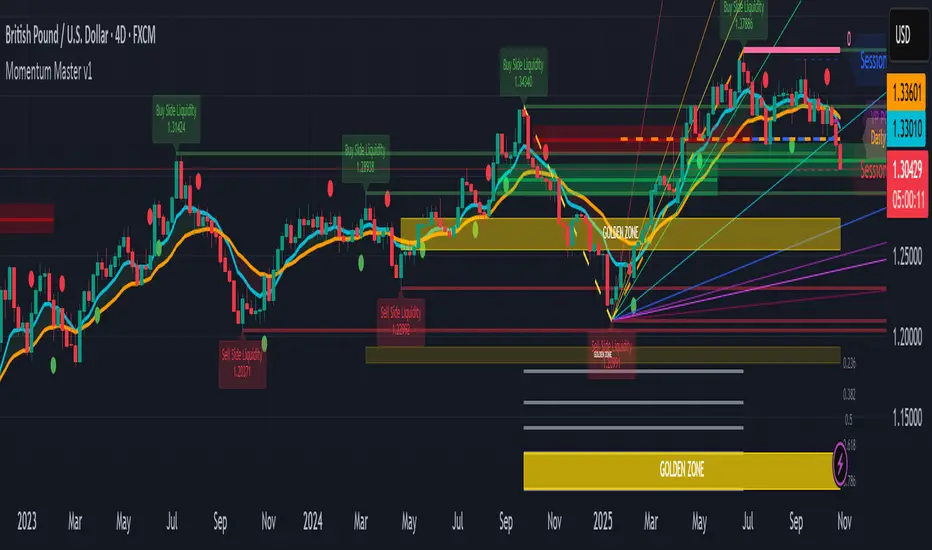 - Buy-Side Liquidity: Swing highs (ta.pivothigh with configurable lookback)