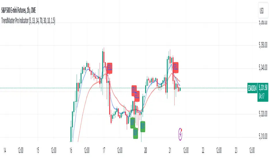 The TrendMaster Pro Indicator is an advanced tool designed to assist traders in identifying potential buy and sell signals by leveraging a combination of exponential moving averages (EMAs), the relative strength index (RSI), and a custom volatility filter. This powerful indicator is suitable for traders of all levels and can be applied to various markets and timeframes, offering flexibility and reliability in trading decisions.