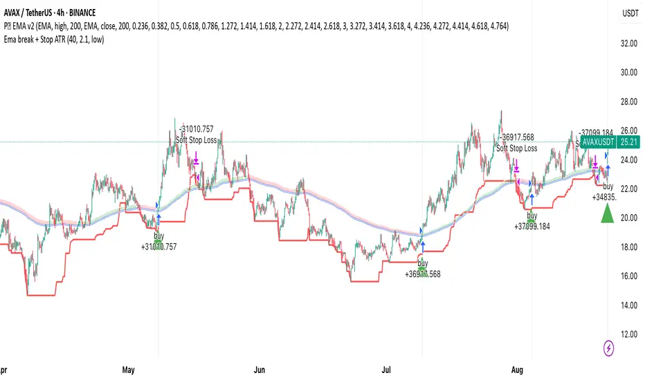 Strategy using the EMA200 Break for entry and the Stop ATR for exit