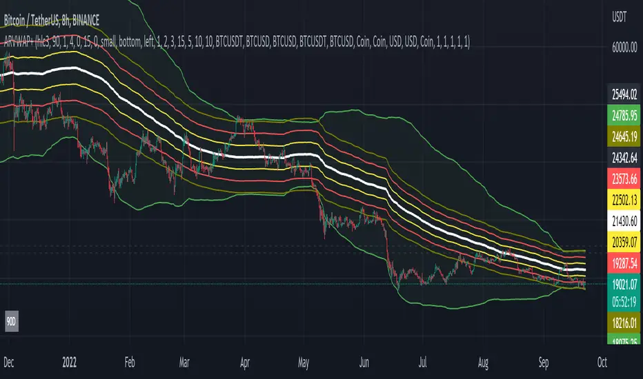 - Symmetrical deviations create range of "tolerance" around the RVWAP at a fixed % distance. This helps in situations when price does not respect the exact RVWAP level and goes slightly above/under.