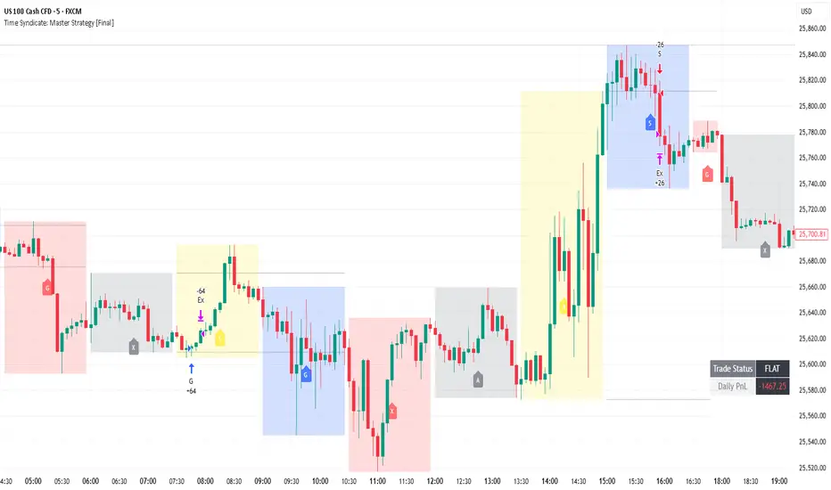 Time Syndicate – Master Strategy is a non-repainting, cycle-aware execution framework designed to trade structured market phases rather than random price movement.