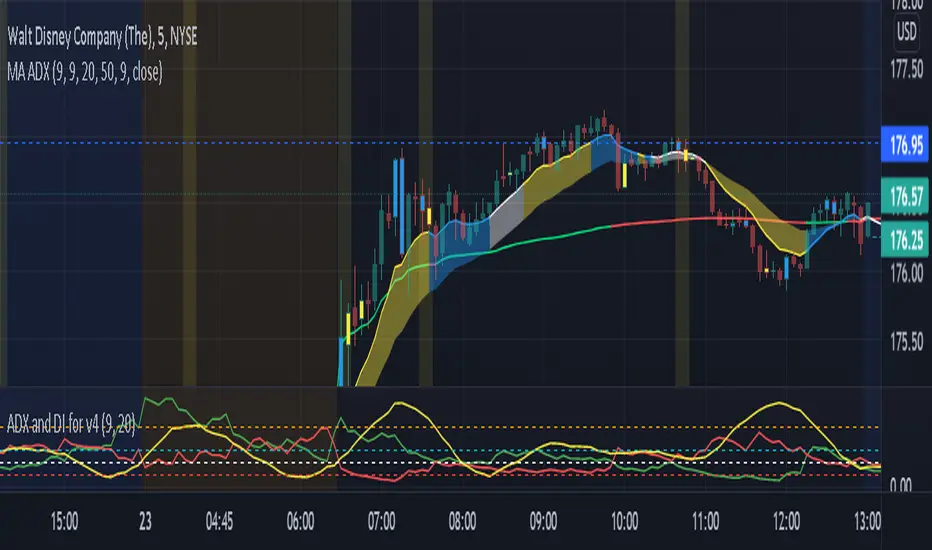 Changed the ADX length to 5 and the di legnth to 3 in order to actually fit the current price action since the bigger values are lagging the price action... Also I changed the ADX 50 ema to become Vwap since that calculates current day price action. A Lot of people use vwap for easy bull or bear trend sentiment.Release Notes
