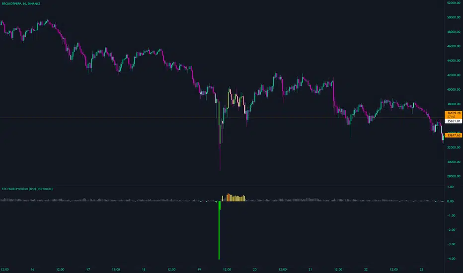 Included is barcoloring, changeable by user, and value bracketing in the input. Users can also change the candle close resolution for a higher time frame premium reference.