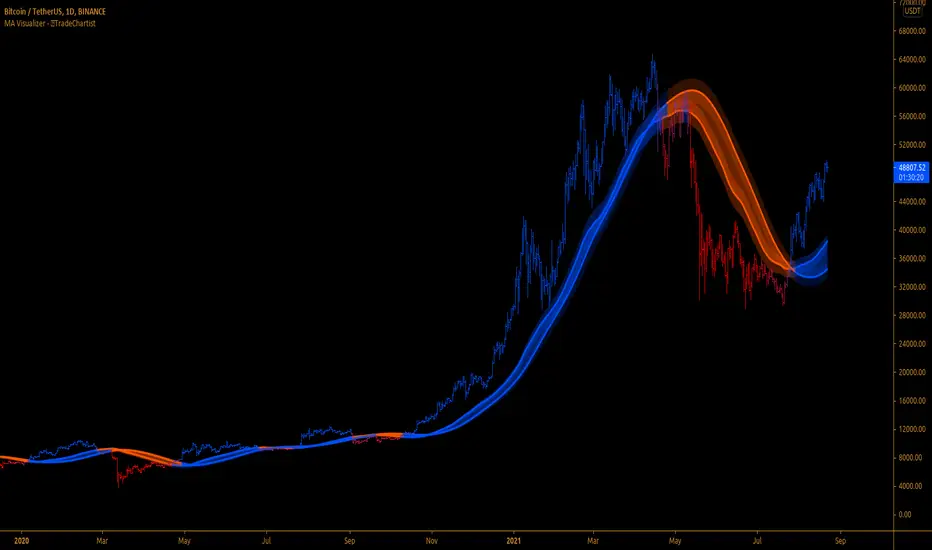 ™TradeChartist MA Visualizer is a Moving Average based indicator aimed to visualize price action in relation to the Moving Average in a visually engaging way.
