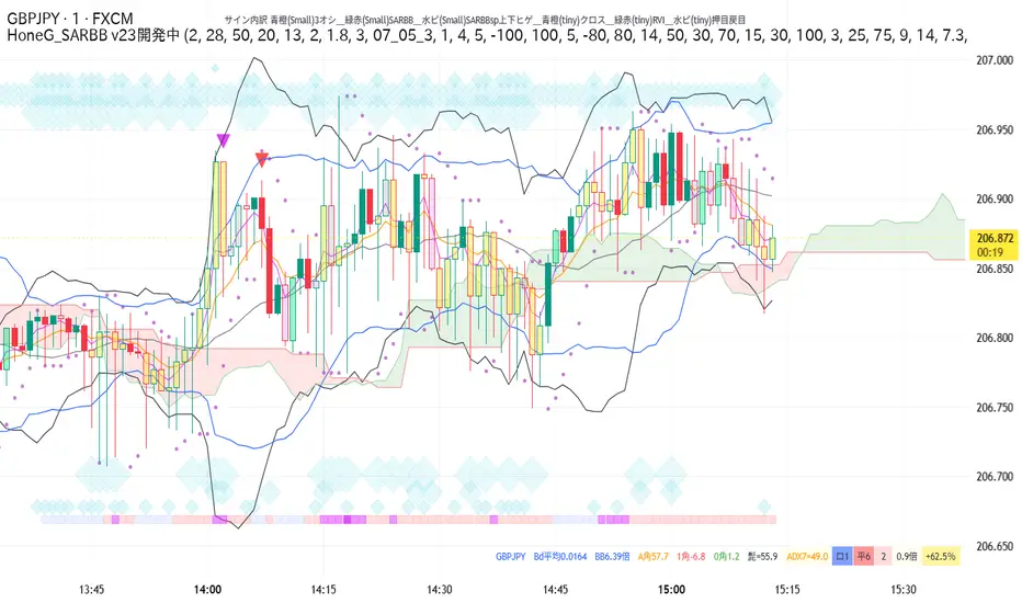 This is the development version of ver23 for a 1-minute trading signal tool based on indicators like B, SAR, ADX, RSI, and RCI.
