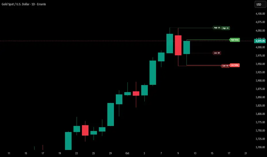 • Three-day structure: Displays current, previous, and 2-day-old highs/lows for contextual price action.