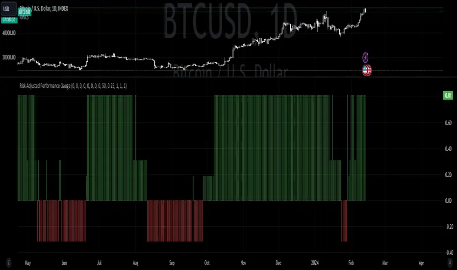 The "Risk-Adjusted Performance Gauge" is a comprehensive indicator that amalgamates key risk and performance metrics to provide traders and investors with a holistic view of an asset's historical performance. By combining four essential indicators—Sharpe Ratio, Sortino Ratio, Omega Ratio, and Z-Score—this gauge aims to offer a nuanced assessment of risk-adjusted returns.