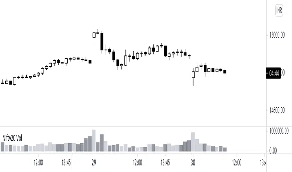 This script computes the volume for Nifty 50 index. I am using top 20 stocks here that constitute about 75% of the Nifty 50. I had used the script created by shijithlal as a base for this. He has used all 45-50 stocks in his script. You can look that up if you want a more accurate volume.