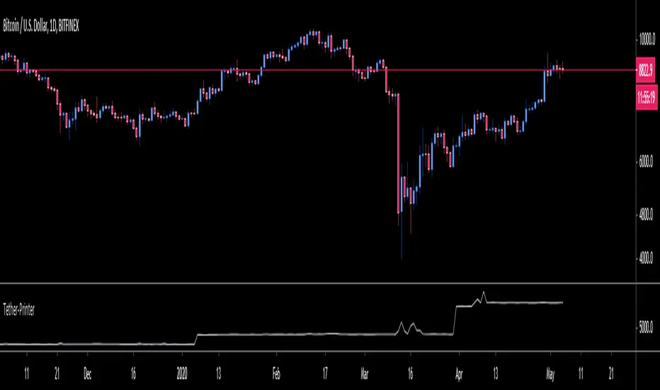 Shows the total market cap of USDT (US Dollar Tether) currency. Helpful for swing trading longer timeframes and indentifying new supply in the crypto market.