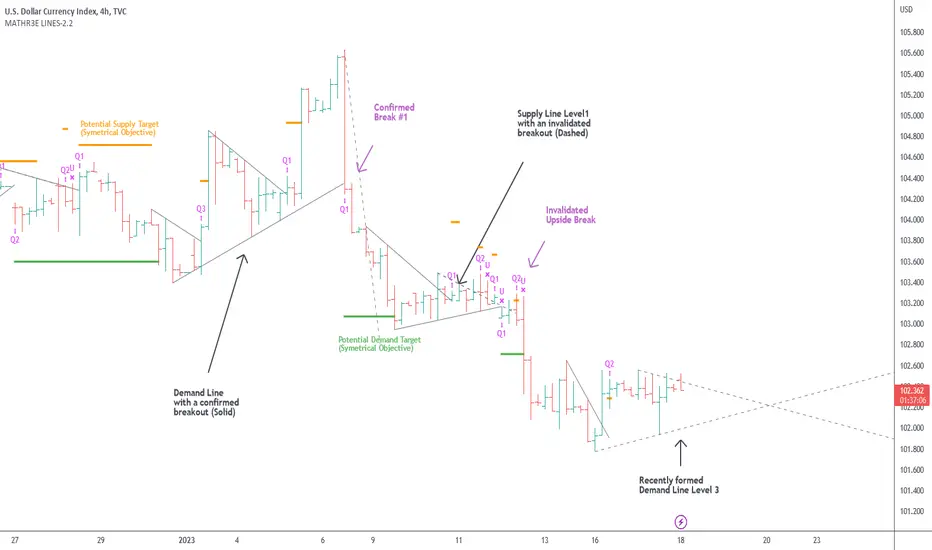 • Otherwise, for invalidated breakouts or broken trendlines , they will remain dashed