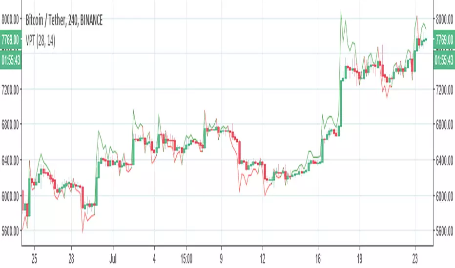 The volume price trend (VPT) indicator helps determine a security’s price direction and strength of price change. The indicator consists of a cumulative volume line that adds or subtracts a multiple of the percentage change in a share price’s trend and current volume, depending upon the security’s upward or downward movements.