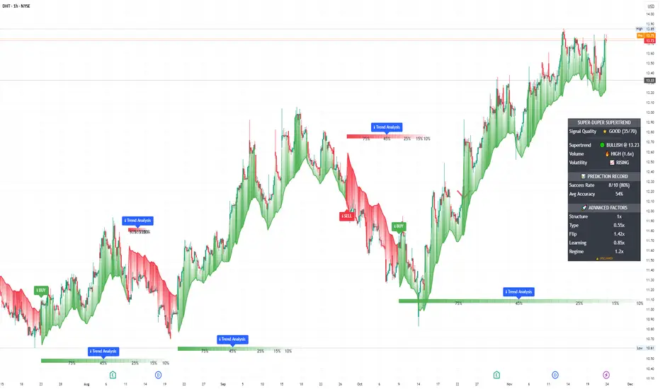 The statistical analysis engine is what sets this indicator apart from standard SuperTrend systems. It doesn't just identify trend changes - it provides statistical analysis of potential duration.