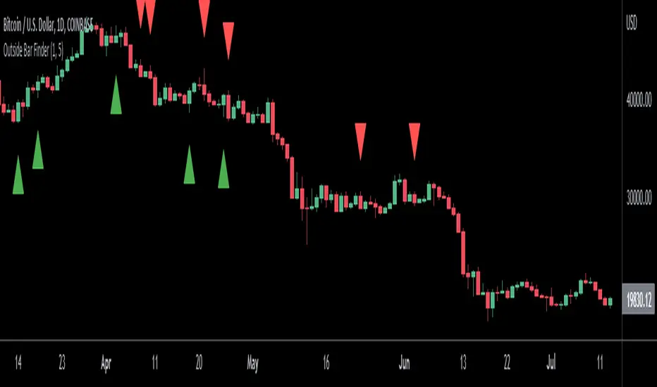 Outside bars occur when the range of a candlestick falls entirely outside of the previous candlestick's range. This indicates indecision and volatility expansion which often leads to changes in trend direction.