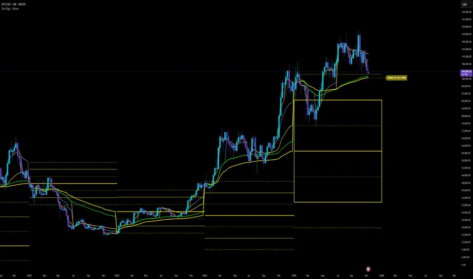 Each timeframe layer is drawn independently, using its own cumulative VWAP and standard deviation calculation, and displayed as horizontal ranges aligned precisely with calendar periods. This structure allows the chart to show where price currently trades relative to past value zones and how each higher-timeframe VWAP acts as a dynamic reference for mean reversion or continuation.