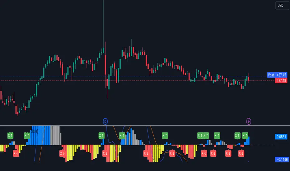 A simple MACD Histogram with labels showing when the MACD Line and Signal Line crossover.Open-source script