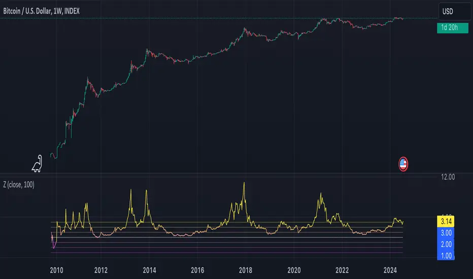 Also has an option to switch to "Sample Z score" in settings with a specified lookback period.