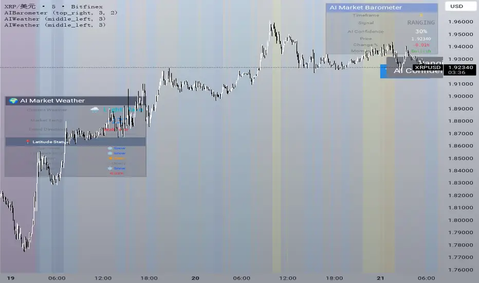AI Market Weather Forecast Pro is an innovative multi-timeframe trading system that uses global meteorological metaphors to visualize market conditions. By analyzing dimensional latitude regions, it transforms complex market data into intuitive global weather forecasts and temperature readings, helping traders quickly assess market sentiment and trend strength.