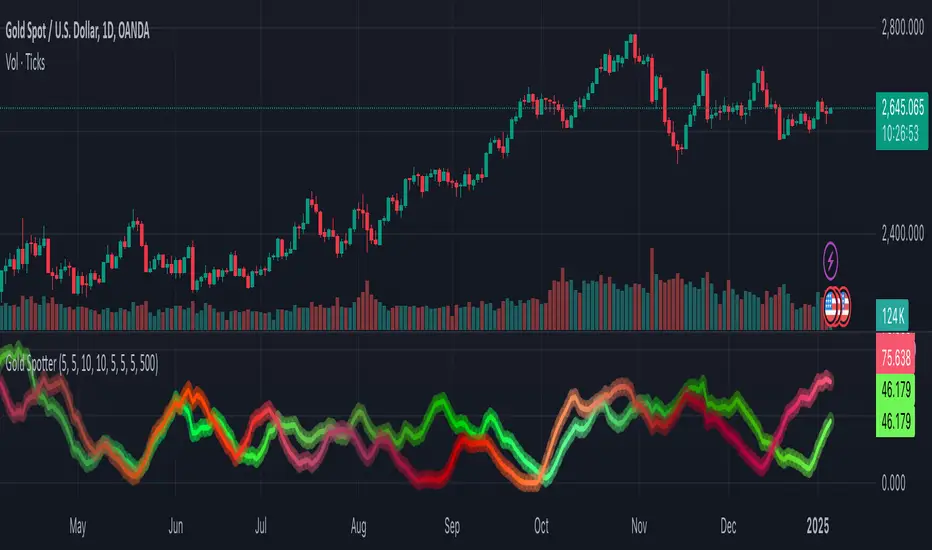 By measuring hidden relationships between these two baskets and weighting them by the chart’s trend, the green/red lines often provide an early read on which direction Gold might take next usually leading by 3-7 days.