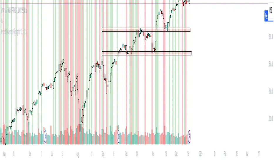 The Percent Movement Highlighter is a custom TradingView indicator that visually highlights candles based on their percentage movement relative to the previous day's close. The indicator uses two user-defined thresholds: