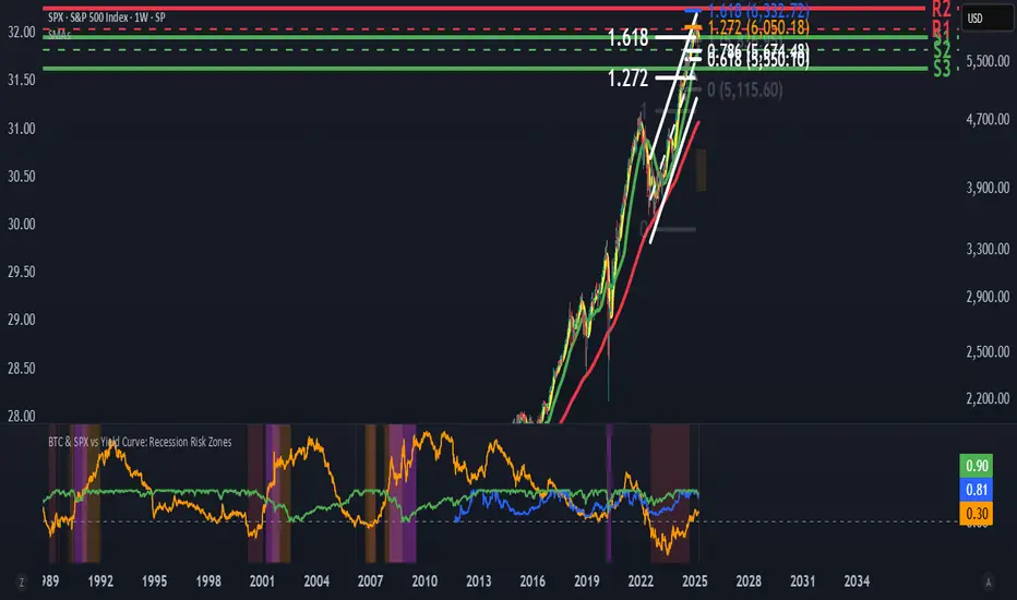 📘 BTC & SPX vs Yield Curve – Recession Risk ZonesThis macro tool helps you identify when Bitcoin (BTC) and the S&P 500 (SPX) may be at risk based on the U.S. 2Y–10Y yield curve and historical recession timing.