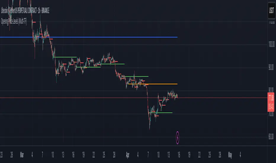 Opening Price Levels (Multi-TF)This script draws opening price levels for different time periods on the chart. It allows you to display the opening price lines for the year, quarter, month, week, and day based on your selection.
