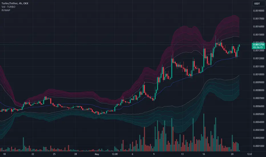 - Multiple Standard Deviation Bands: The indicator includes up to five adjustable standard deviation bands, each with customizable multipliers. These bands are plotted around the RVWAP to indicate potential support and resistance levels, helping traders identify areas of high and low volatility.