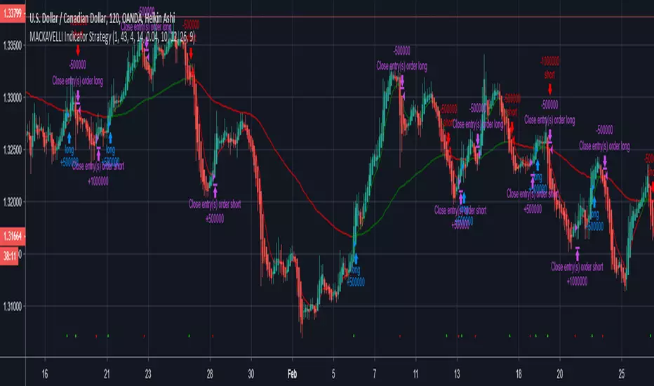 Be advised, you need to adjust the settings for each currency pair and time-frame. Once you do that, back-test it and count the last 100 trades to determine accurately your wins/losses. Long entries are the top of the previous bar, shorts are the bottom of the previous bar. This is a more accurate way of counting wins/losses. Tradingview back-test's are not accurate because of where they estimate your long/short entries are, it's very misleading.