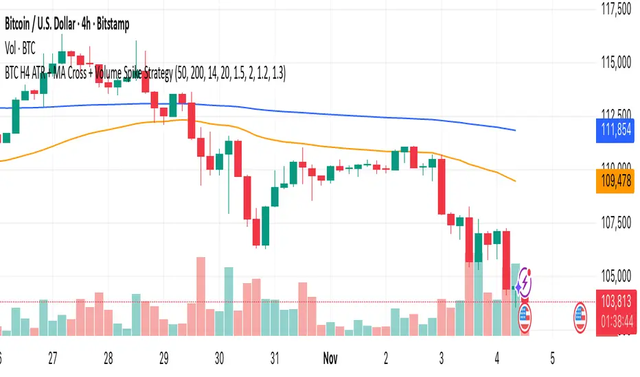 BTC H4 ATR + MA Cross + Volume Spike Strategy