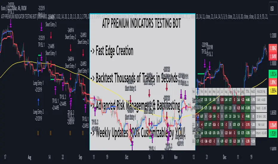 The ATP Premium Indicators Testing Bot is the most advanced and comprehensive tool available for building, testing, and refining trading strategies. Test thousands of trades in seconds, access almost 100 indicators, download detailed trade data, and discover new edges you never thought possible. This unique bot offers unparalleled flexibility and power, allowing you to test, customize, and automate your strategies like never before. Backtest with confidence, automate with precision, and stay ahead of the competition with weekly updates and expanding features.