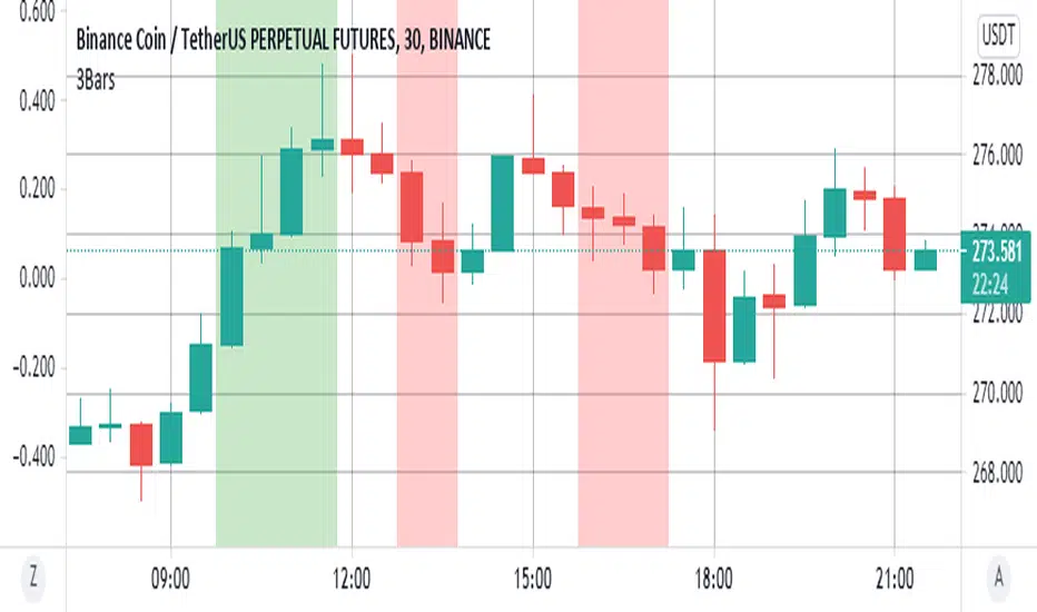 An indicator that creates an alert and shows the moment when there are 3 consecutive candles in the same direction.