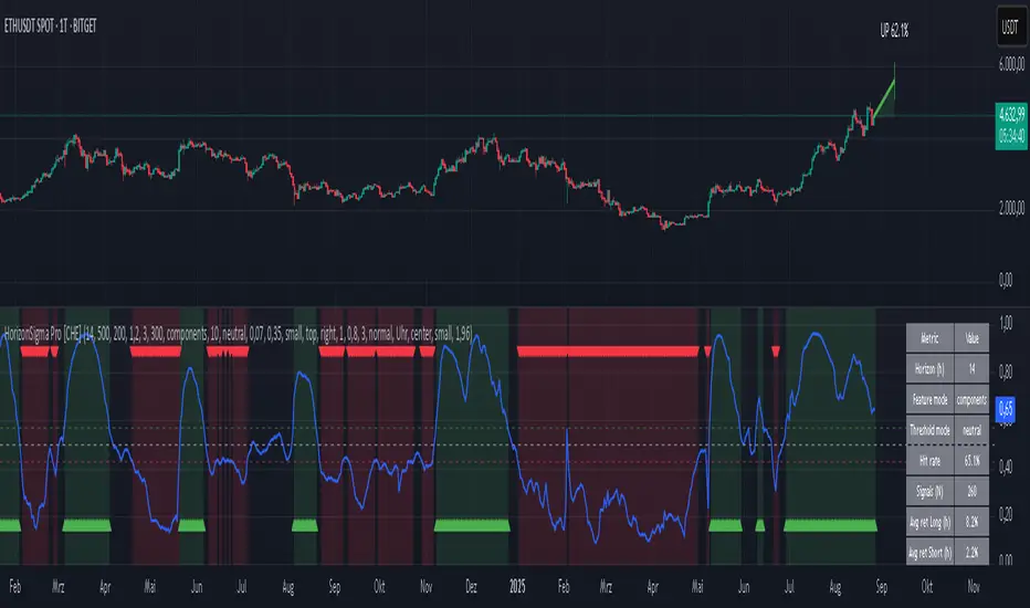 No indicator guarantees profits. HorizonSigma Pro [CHE] is a decision aid; always combine with solid risk management and your own judgment. Backtest, forward test, and size responsibly.