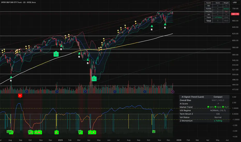 VIX Term Structure Pro is an advanced multi-factor market timing indicator that analyzes the VIX futures term structure, volatility regime, and market breadth to generate actionable buy/sell signals.