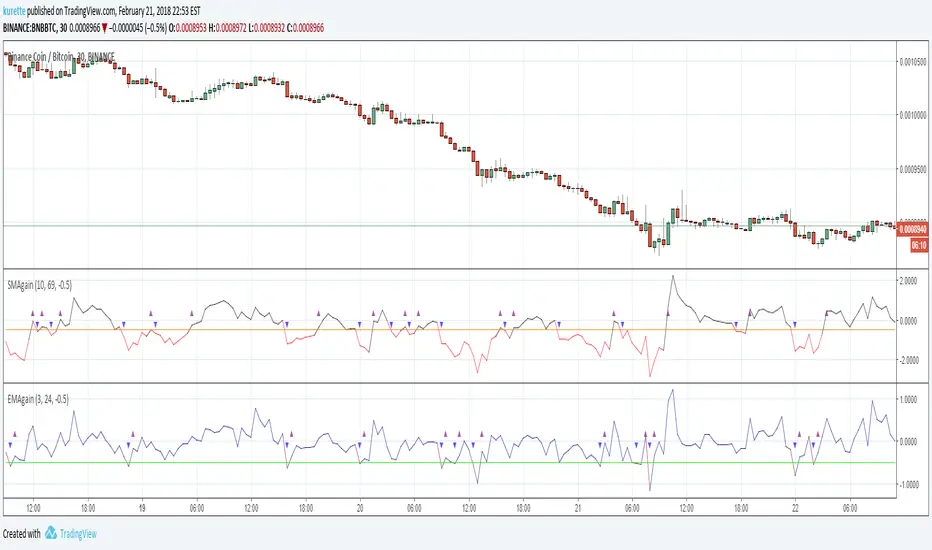 EMAgain in ProfitTrailer is the strategy using the spread difference between the price and combination of fast EMA and slow EMA .