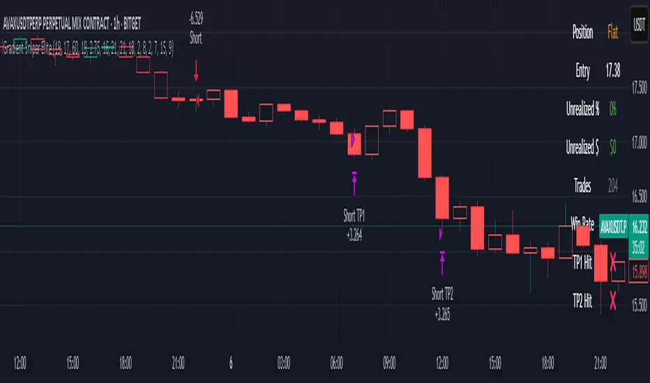 Every element in this script is designed to work with confirmed bar data only. There is zero forward-looking logic. This makes Gradient Sniper Elite fully compatible with both backtesting and live algo execution.