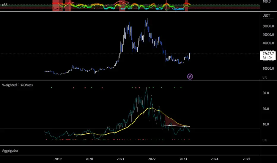 Revision of tedtalksmacro's risk-on metric. Number go up means global markets are more risk-on; number go down means more risk-off. Weights now allow you to adjust the weights of various elements of the indicator. These are exponentials with the weight being the power / 10.