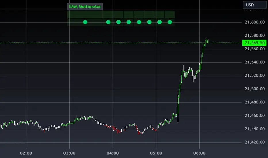 Shows the status of each MA with green or red dots to indicate price proximity.