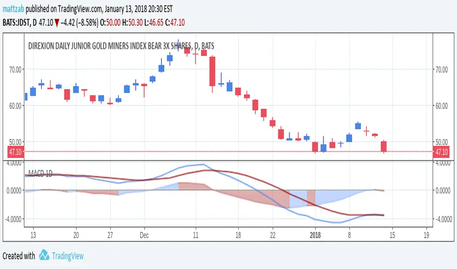 1 Day Standard MACD with a filled in Histogram (area) with color coding to show Histogram direction.