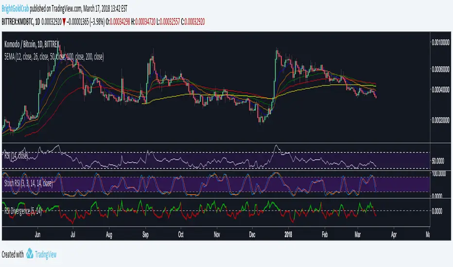 Hey guys. Here's a basic script that puts 5 EMAs on your screen at once without having to use multiple indicator slots. The colors and bandwidths are customizable, and you can can even hide EMAs which you are not currently using, say if you wanted 12/26 only or 50/200. Happy trading!