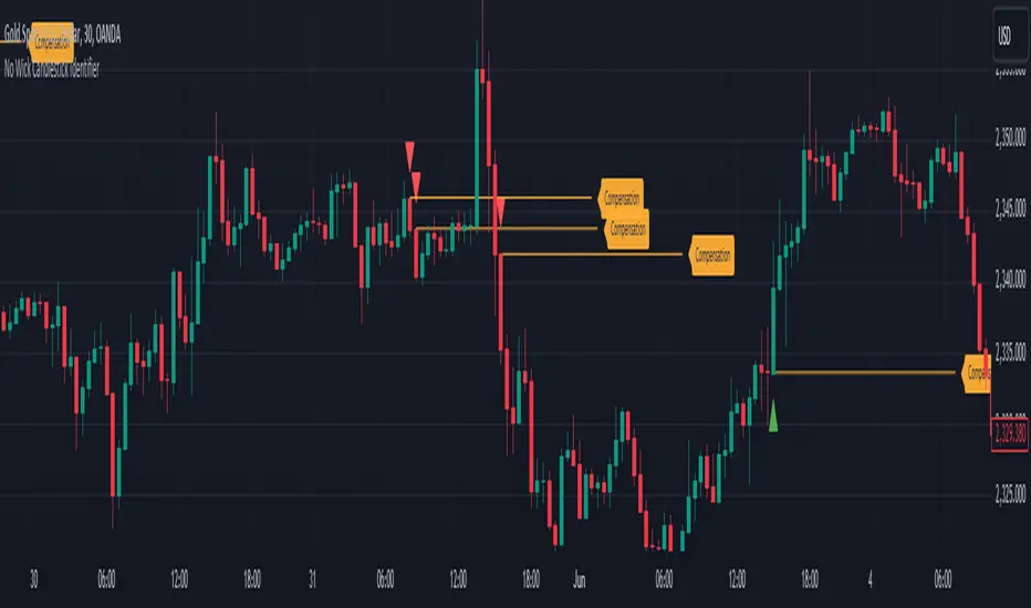 3. Drawing Lines and Labels: Additionally, the script draws lines extending from the opening price of these candles to the right edge of the screen, visually indicating the duration of these patterns. It also adds a label "Compensation" next to each line.