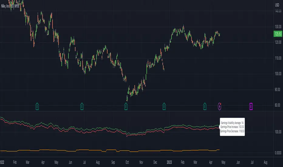 This code looks back over X number of earnings cycles (default is 8) and X number of bars in each earnings cycle (default is 15) to calculate the largest move in each defined earnings period.