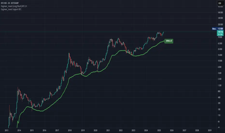 The "Engineer_Invest Support BTC" indicator is a well-thought-out analytical solution for technical analysis, combining elements of trend smoothing and a volatility filter. It can be used as an independent tool to find key support levels, or combined with other analysis methods to form a more complete picture of market dynamics.