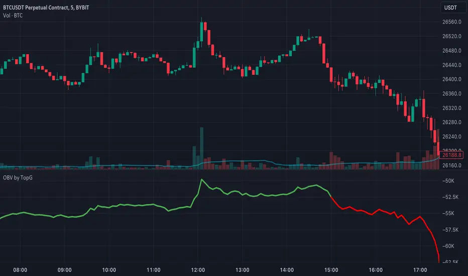 This indicator is based on the On-Balance Volume indicator and it colors the line based on the 12/21 EMAs.