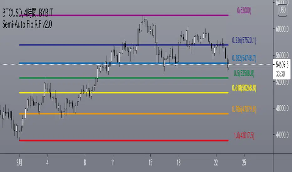 Semi-Automatic Fibonacci Retracement for Free ver.2.0Updated the input form to be closer to the built-in Fibonacci retracement.