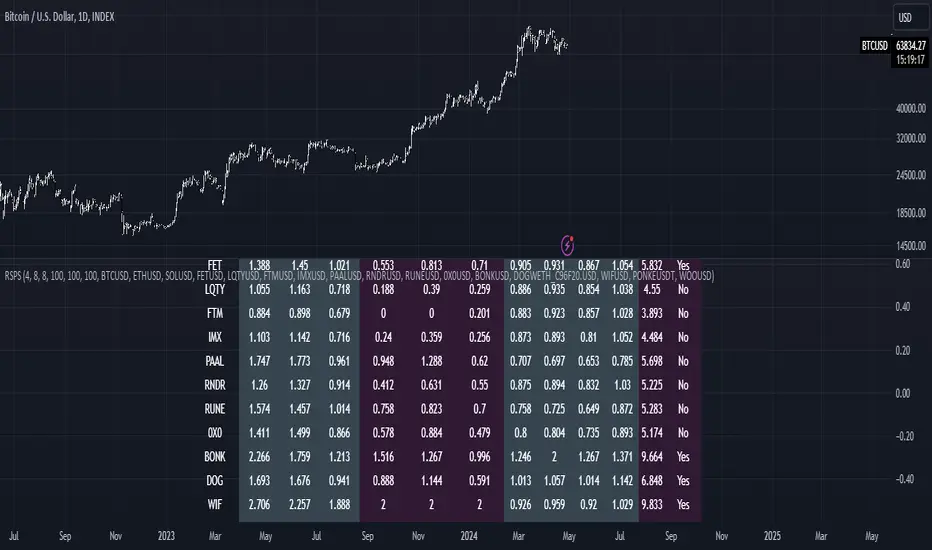 Relative Strength table that calculates assets normalized z score beta from three benchmark assets (total, btc, eth) and does normalized rsi ema calculation to asset vs usd, btc, eth.