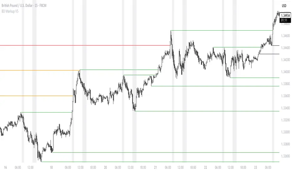 BD Markup V5 — Multi-Time-Frame Extremes & Session Shading